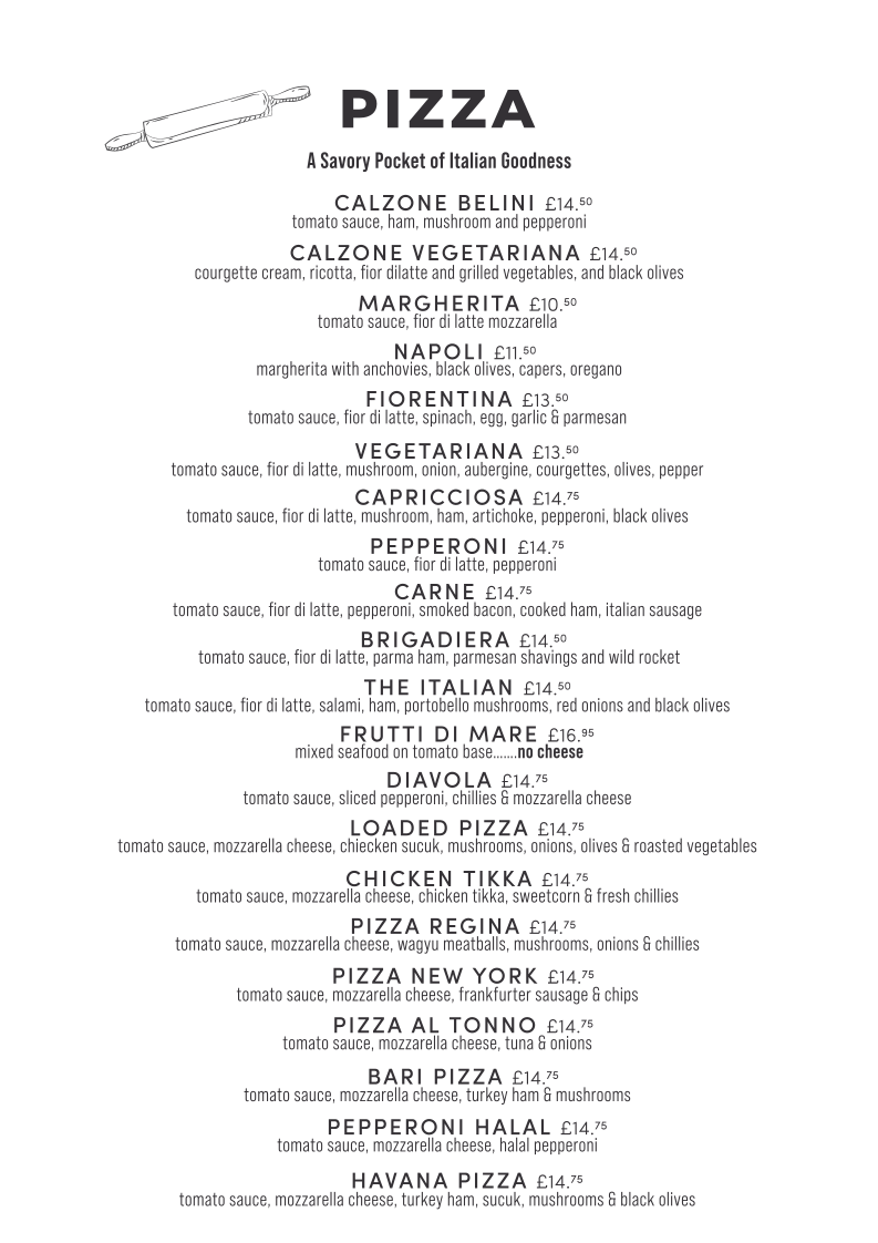 tomato sauce, mozzarella cheese, turkey ham, sucuk, mushrooms & black olives